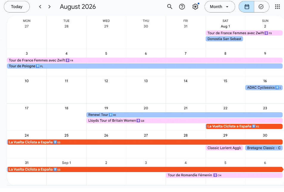 The 2026 cycling season is just around the corner, and the first half of the year promises plenty of excitement. From the early-season classics and stage races to the men’s and women’s Giro d’Italia, as well as the women’s Vuelta a España. In this blogpost you will find an overview of the World Tour races in the first half og 2026 as well as an iCalendar with all Worldtour races of 2026.