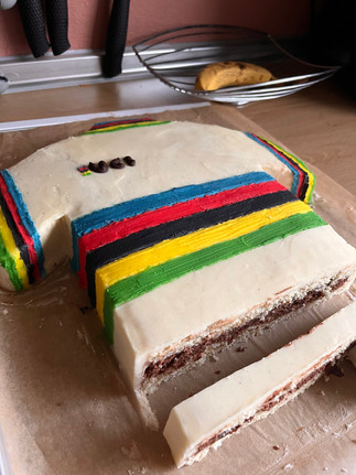 Then i let the cake cool down, before it was time to cut the cake into the shape of the rainbow jersey🌈